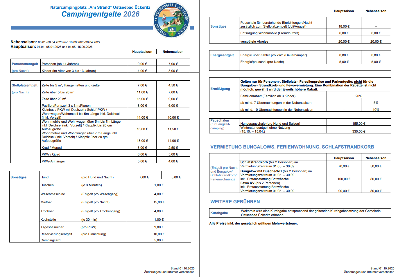 Die Preise für 2025 finden Sie unter dem Button "Preise".